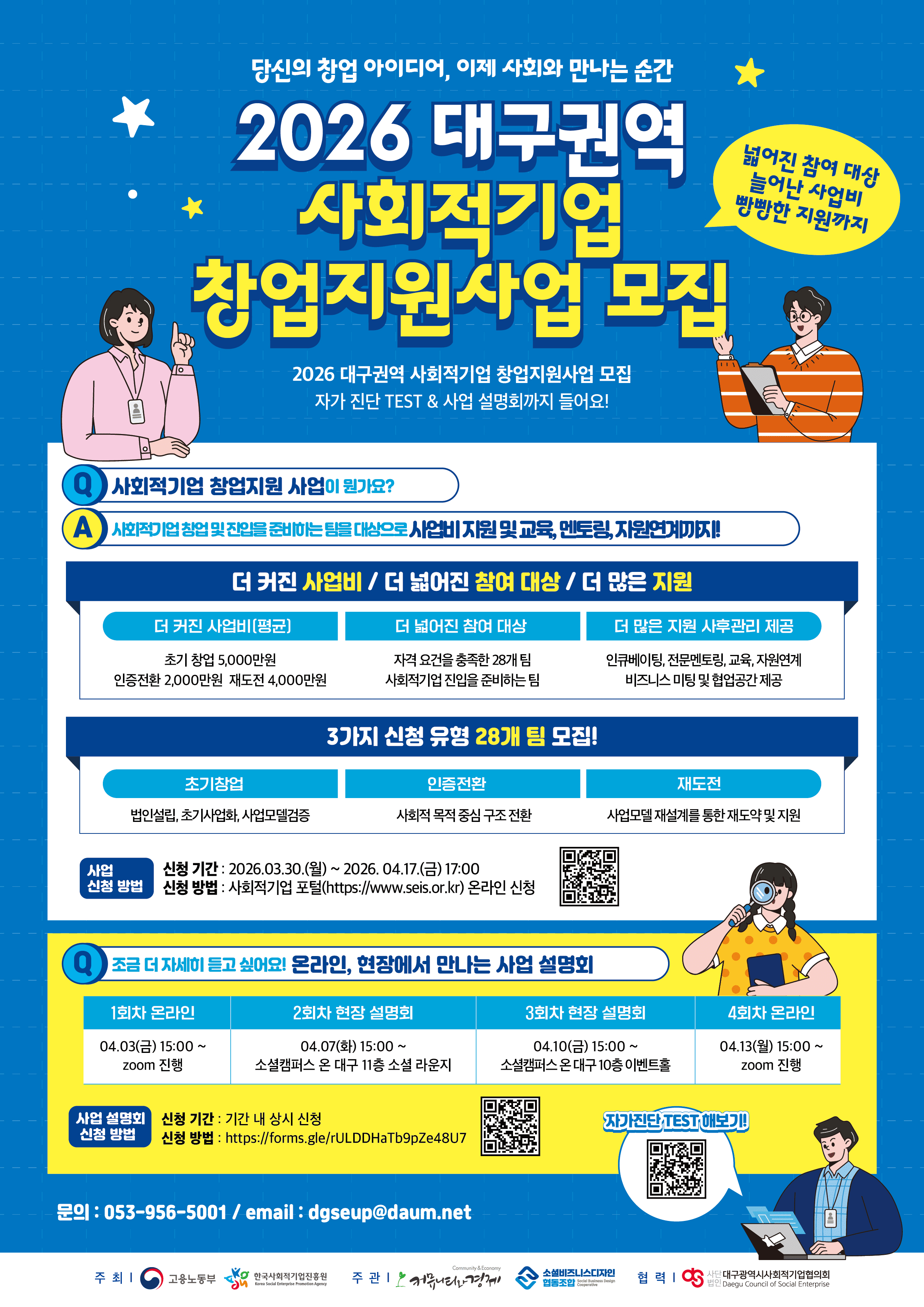 2026년도 대구권역 사회적기업 창업지원사업 창업팀 모집 공고(~4/17)